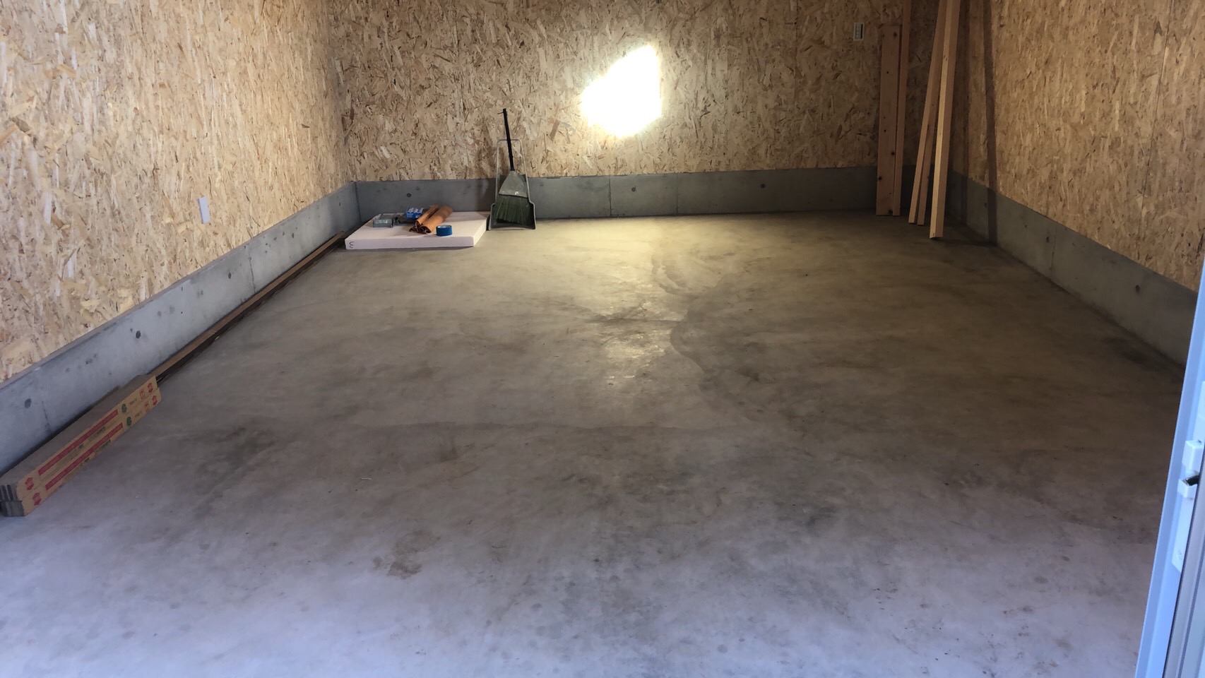 農業倉庫の内部 ここにお米用の大型冷蔵庫などが設置されていきます。